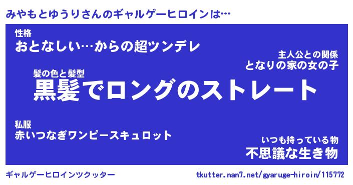 | 男性向けラノベタイトル風あだ名 | 『みやもとゆうりの憂鬱』 |