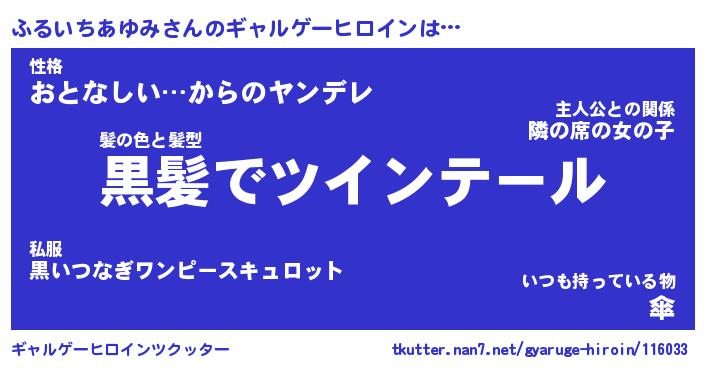 | 男性向けラノベタイトル風あだ名 | 『ふるいちあゆみの憂鬱』 |