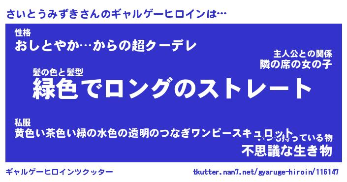 | 伝説のあだ名 | 『封印されしスナイパーさいとうみずき』 |