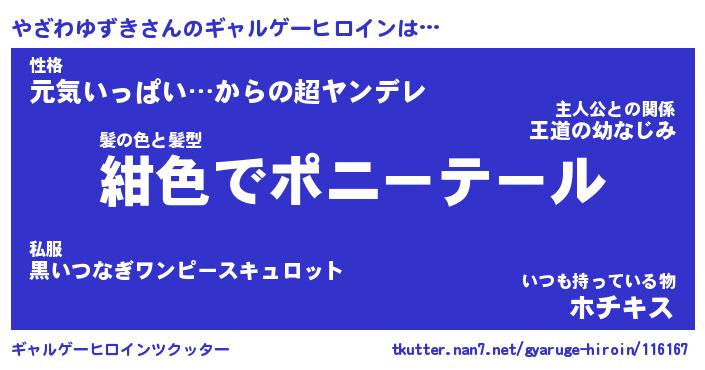 | ヒーロー風カッコイイあだ名 | 『スーパーヤザワユズキ』『暗黒騎士ヤザ』 |