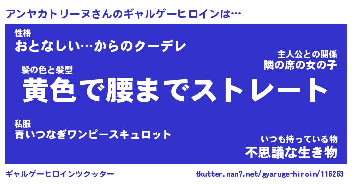 | 伝説のあだ名 | 『封印されしスナイパーアンヤカトリーヌ』 |