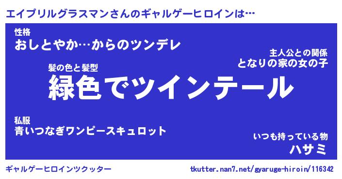 | 男性向けラノベタイトル風あだ名 | 『エイプリルグラスマンアートオンライン』 |