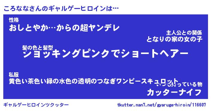| 女子向けラノベタイトル風あだ名 | 『(仮)ころななのやんごとなき事情』 |
