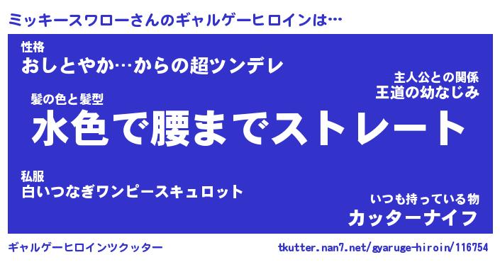 | 男性向けラノベタイトル風あだ名 | 『ミッキースワローの憂鬱』 |