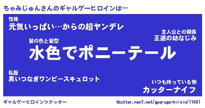 | 男性向けラノベタイトル風あだ名 | 『ちゃみじゅんの憂鬱』 |