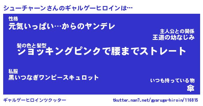 | ヘコむあだ名 | 『シュにゅー』『なまこ酢』 |