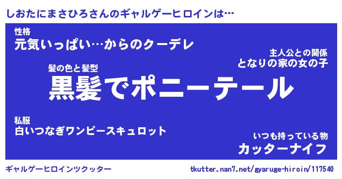 | 女子向けラノベタイトル風あだ名 | 『しおたにまさひろ姫と円卓の騎士』 |