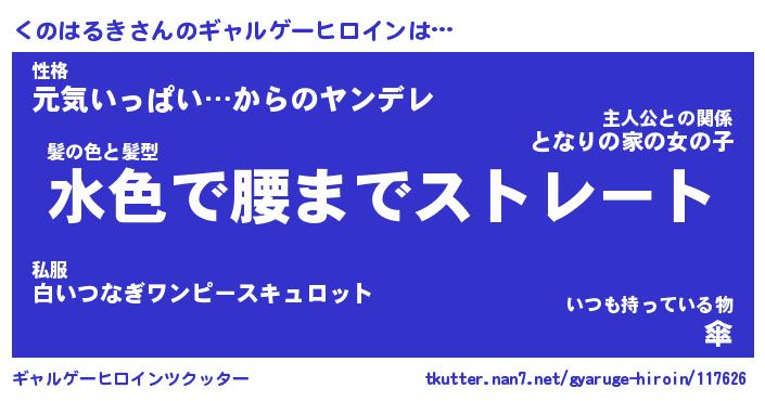 | ヘコむあだ名 | 『くのにゅー』『なまこ酢』『くのを』 |