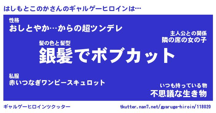 | 男性向けラノベタイトル風あだ名 | 『はしもとこのかの憂鬱』 |