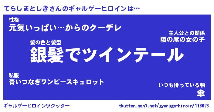 | 男性向けラノベタイトル風あだ名 | 『てらしまとしきの憂鬱』 |
