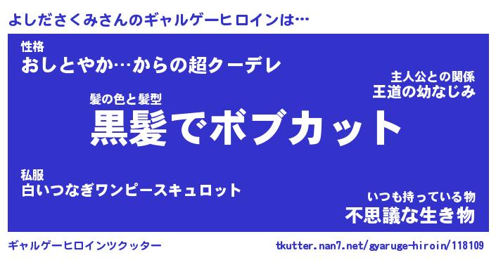 | ヒーロー風カッコイイあだ名 | 『スーパーヨシダサクミ』『魔戒騎士ヨシ』 |