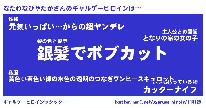 | 女子向けラノベタイトル風あだ名 | 『なたわなひやたか姫と円卓の騎士』 |