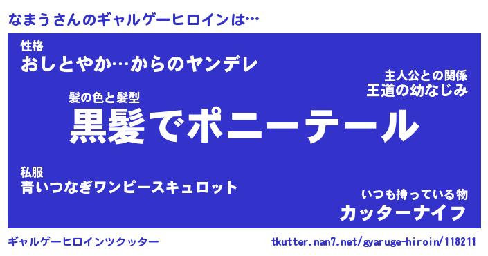 | ファンタジー風あだ名 | 『ナマフェル』『エターナルナマウー』 |