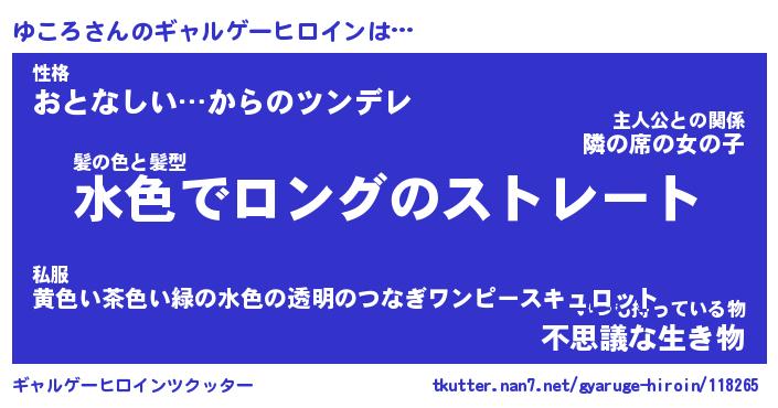 | 女子向けラノベタイトル風あだ名 | 『(仮)ゆころのやんごとなき事情』 |