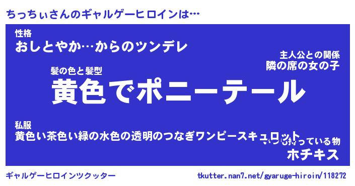 | ヒーロー風カッコイイあだ名 | 『スーパーチッチィ』『天弓騎士チッ』 |