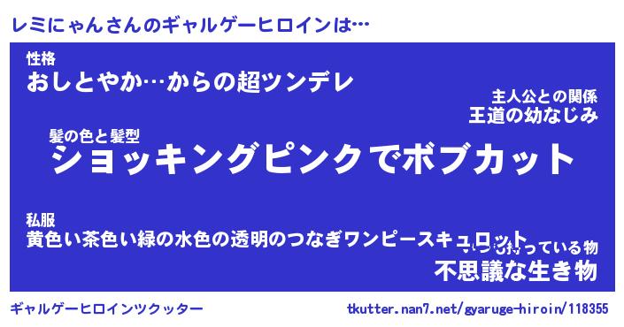 | 男性向けラノベタイトル風あだ名 | 『レミにゃんの憂鬱』 |