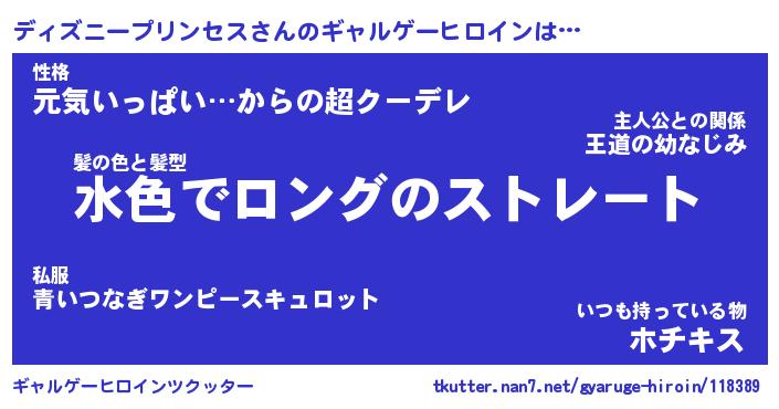 | 女子向けラノベタイトル風あだ名 | 『(仮)ディズニープリンセスのやんごとなき事情』 |