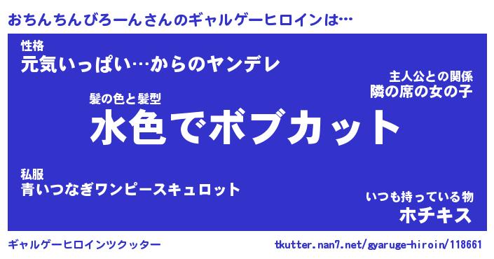 | 男性向けラノベタイトル風あだ名 | 『おちんちんびろーんの憂鬱』 |