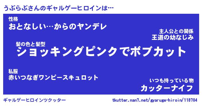 | 男性向けラノベタイトル風あだ名 | 『うぶらぶの憂鬱』 |