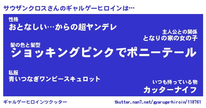 | 男性向けラノベタイトル風あだ名 | 『サウザンクロスの憂鬱』 |
