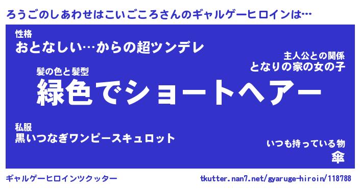 | ツイッター | ろうごのしあわせはこいごころさんのツイッターID『dendenmushi_nyan』 |