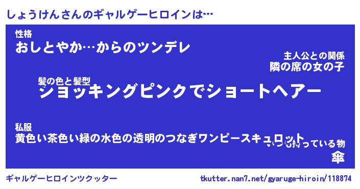 | 男性向けラノベタイトル風あだ名 | 『しょうけんの憂鬱』 |