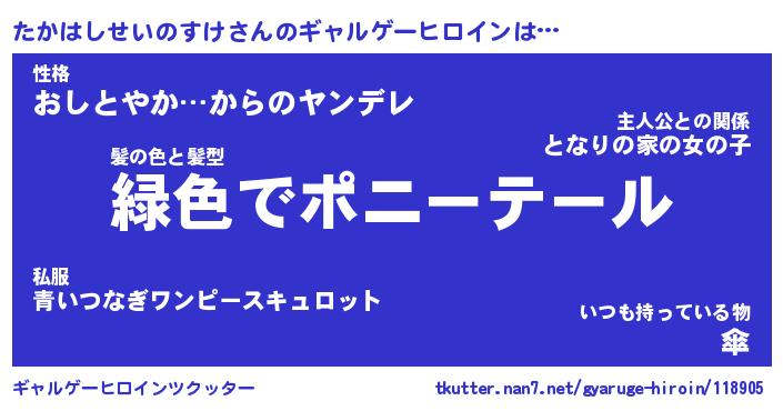| 女子向けラノベタイトル風あだ名 | 『たかはしせいのすけ姫と円卓の騎士』 |