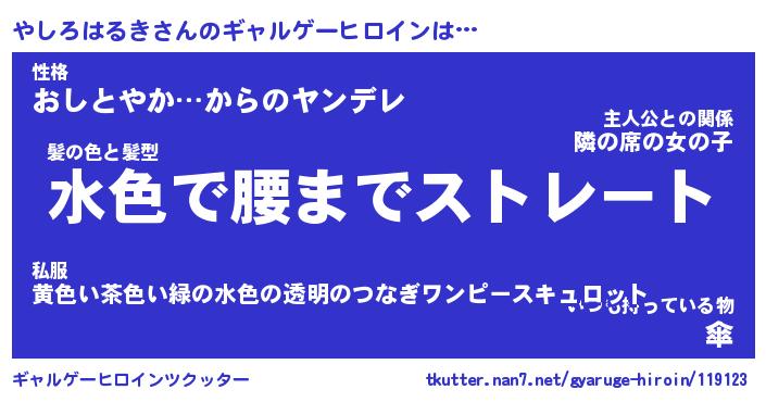 | 男性向けラノベタイトル風あだ名 | 『やしろはるきの憂鬱』 |