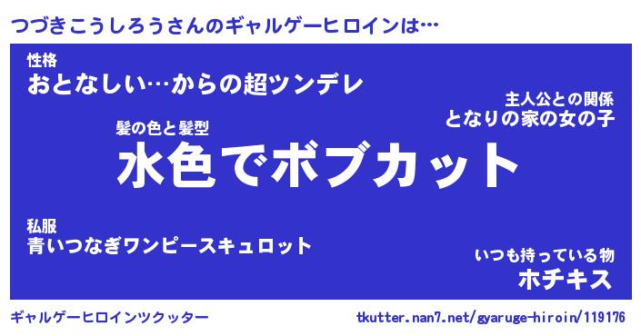 | 女子向けラノベタイトル風あだ名 | 『(仮)つづきこうしろうのやんごとなき事情』 |