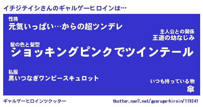 | 男性向けラノベタイトル風あだ名 | 『イチジテイシの憂鬱』 |