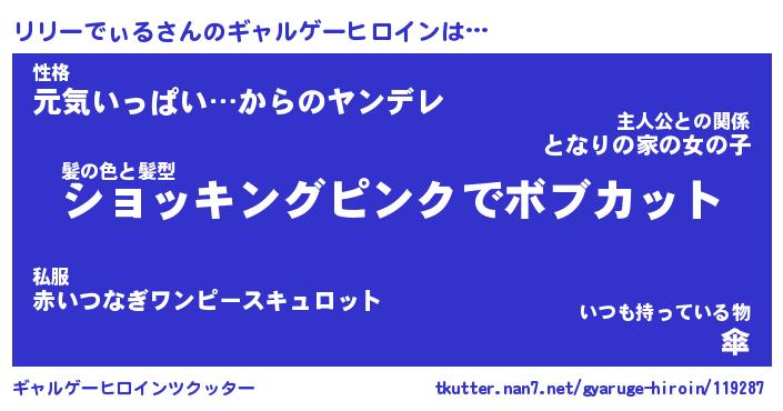| 男性向けラノベタイトル風あだ名 | 『リリーでぃるの憂鬱』 |
