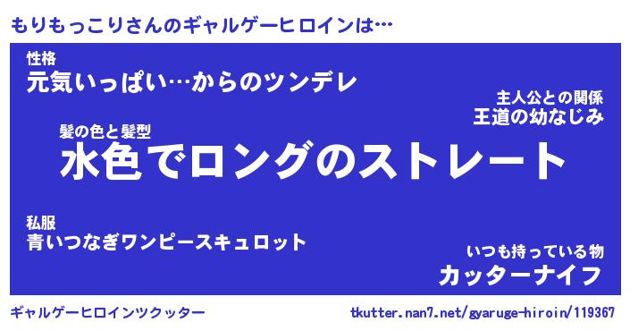 | 男性向けラノベタイトル風あだ名 | 『もりもっこりの憂鬱』 |