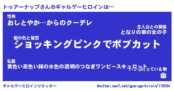 | 女子向けラノベタイトル風あだ名 | 『(仮)トゥアーナップのやんごとなき事情』 |