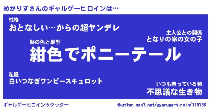 | 女子向けラノベタイトル風あだ名 | 『誰かこのめかりすを説明してください! ~契約から始まるウェディング~』 |
