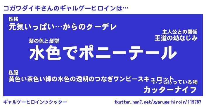 | 男性向けラノベタイトル風あだ名 | 『コガワダイキの憂鬱』 |