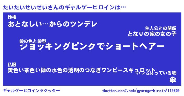 | 女子向けラノベタイトル風あだ名 | 『(仮)たいたいせいせいのやんごとなき事情』 |