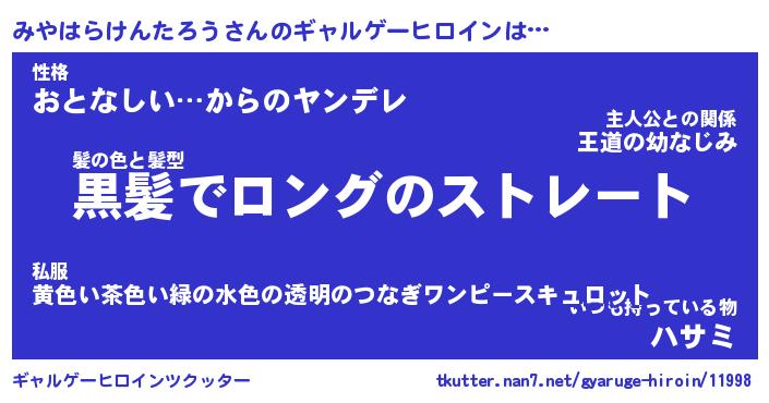 | 男性向けラノベタイトル風あだ名 | 『みやはらけんたろうの憂鬱』 |