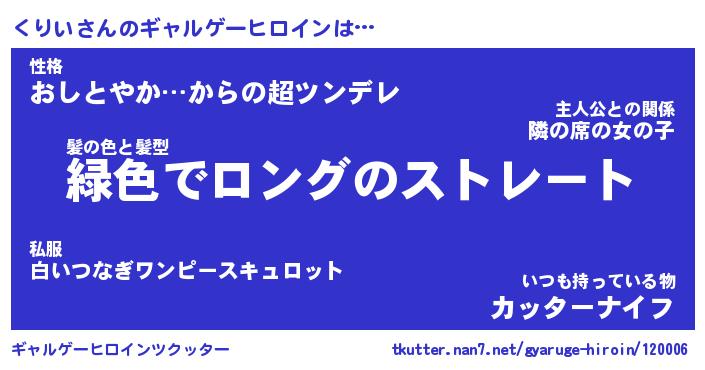 | 意味不明あだ名 | 『ペロリンくりい』『くりいフォーエバー』 |