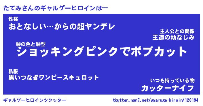 | ファンタジー風あだ名 | 『タテフェル』『エターナルタテミー』 |