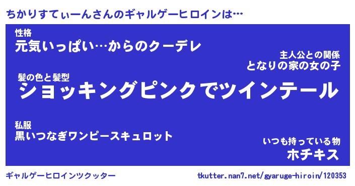 | 男性向けラノベタイトル風あだ名 | 『ちかりすてぃーんの憂鬱』 |