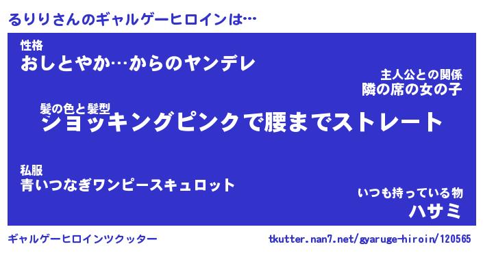 | 男性向けラノベタイトル風あだ名 | 『るりりの憂鬱』 |