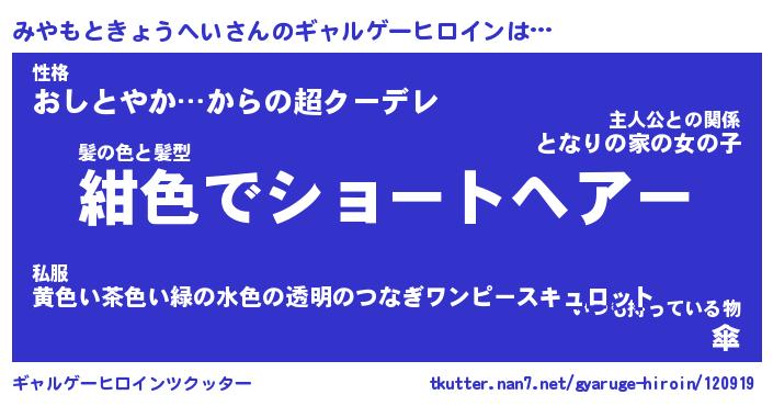| ヘコむあだ名 | 『みやにー』『牛乳』『みや太郎』 |