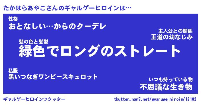 | 男性向けラノベタイトル風あだ名 | 『タカハラアヤコアートオンライン』 |
