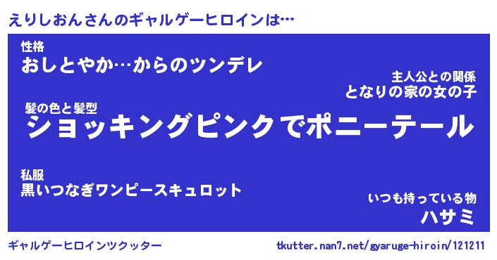 | ファンタジー風あだ名 | 『エリフェル』『エターナルエリシオンー』 |