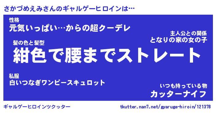 | 男性向けラノベタイトル風あだ名 | 『サカヅメエミアートオンライン』 |
