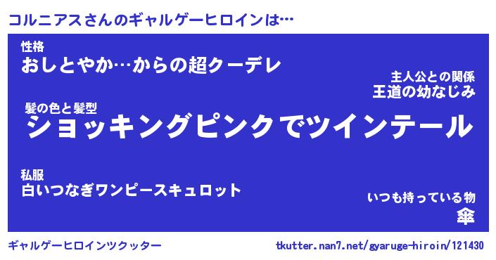 | ヒーロー風カッコイイあだ名 | 『スーパーコルニアス』『天弓騎士コル』 |