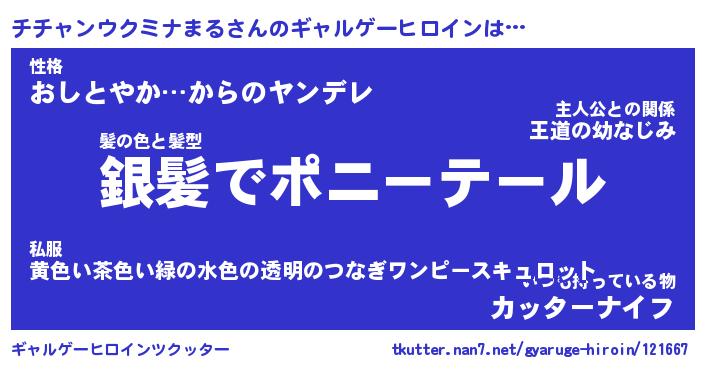 | 男性向けラノベタイトル風あだ名 | 『チチャンウクミナまるの憂鬱』 |