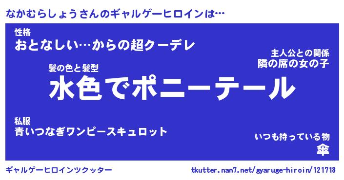 | 女子向けラノベタイトル風あだ名 | 『(仮)なかむらしょうのやんごとなき事情』 |