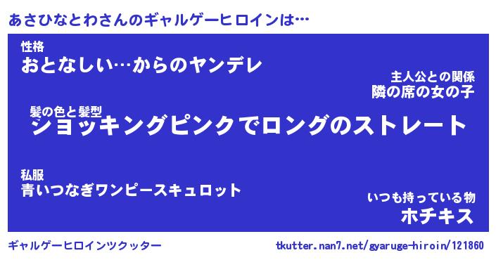 | ヒーロー風カッコイイあだ名 | 『スーパーアサヒナトワ』『銀牙騎士アサ』 |