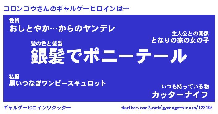 | 男性向けラノベタイトル風あだ名 | 『コロンコウの憂鬱』 |